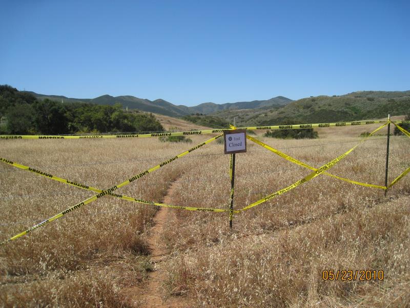 More trails, this time in Point Mugu State Park, have been deemed unauthorized and marked with signs and fencing designating them as closed (View our earlier article on Malibu Creek State Park). One trail, known as “Art’s Trail,” connects Sage Trail and Sin Nombre, paralleling the paved road that leads to Wood Canyon. Two other shorter trails connect to the paved road farther to the west. Here is the narrative and explanation given for these actions from  Dennis Dolinar, District Maintenance Chief, Angeles District, California State Parks: