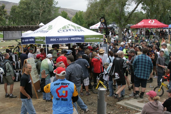 Amid perfect conditions (cool, cloudy), CORBA’s 2010 Fat Tire Fest and fundraiser was once again a great success this past Sunday October 17 at Lake Castaic Recreation Area. Despite some inclement weather in other areas, a great crowd of several hundred enthusiastic mountain bikers and their families enjoyed great riding and fun activities, wrapping up with the ever popular raffle with dozens of great prizes donated by sponsors, vendors, and local bike shops. Of special note was the large number of children riding along with their parents on their mini mountain bikes, a testament to how mountain biking can be a generational activity that both parents and their children can enjoy together throughout their entire lives.