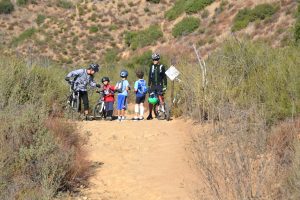 During the break, John demonstrated the strength of his Kevlar gloves. He dared the kids to hit his gloved knuckles with a rock, and they each took a turn. After watching a large group of adult riders negotiate some technical rocky areas, the group saddled up. Most of the kids were uncomfortable riding back down some of the rockier sections, so they learned another lesson in mountain biking: There’s no shame in walking! Once we got past “The Bees,” everyone enjoyed the mostly downhill ride back to the parking lot.