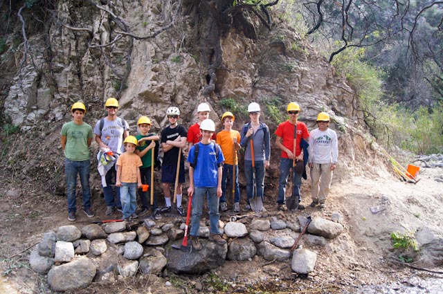With Forest Service and Boy Scout Council approval, Keenan rallied his St. Francis and San Gabriel Valley Composite mountain bike team mates, fellow scouts, and a few willing parents to come out and rebuild this section of trail. The trail was flagged out by Banner Moffat and after two days of prep work by him and Steve Messer of CORBA, was ready for the project.