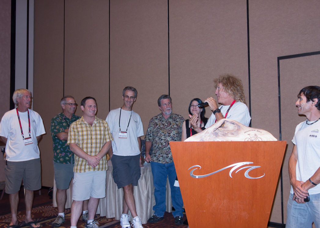 Last week on September 18, CORBA was officially inducted into the Mountain Bike Hall of Fame during the Interbike Trade Show in Las Vegas. Several CORBA founding members, past and current board members, and VIPs attended the event. Also inducted were professional racers Marla Streb and Nicolas Vouilloz, Rim Cyclery (Moab, Utah) founders Robin and Bill Groff, and photographer David Epperson. Click here for more information on this year’s inductees.