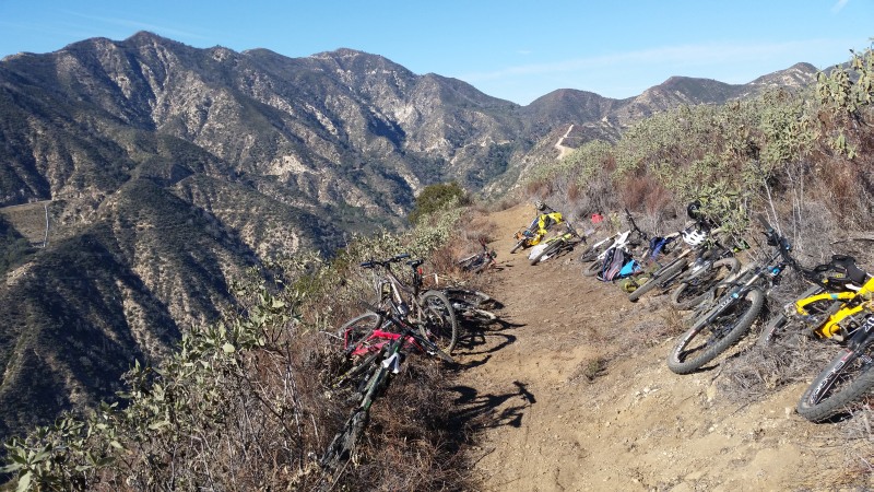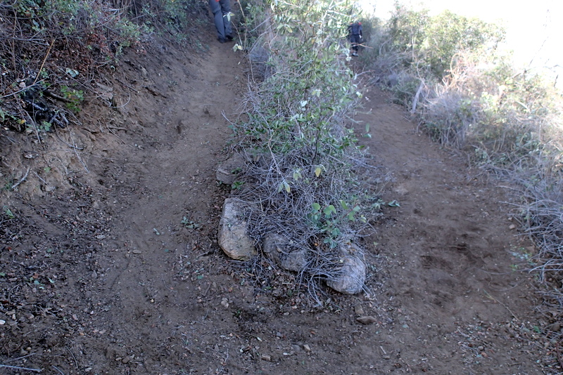 On Sunday, December 13, more than 25 CORBA and Mount Wilson Bicycling Association volunteers came out to help restore the Ken Burton Trail. It was another highly successful day, with another quarter mile of trail brushed, re-cut and restored back to better-than-before-the-fire condition. Following much the same pattern our previous trailwork days have followed, our lead crew rough-cleared brush to reveal the old tread. Others followed with loppers to fine tune, then mcleods and pulaskis to remove the years of accumulated slough and restore outslope and drainage to the tread. We worked on approximately a quarter mile of tread, including the first three (of more than 20) switchbacks, and began prepping the trail beyond that.