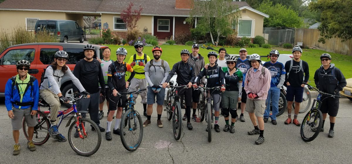 Saturday, March 19, 2016, was a perfect day to do trailwork. There was moisture in the ground from the week’s rain, temperatures were cool, and the crew were able to ride to and from the work site via the Gabrielino trail. A half-dozen or so volunteers were already on their way to the work site when this group photo was taken.