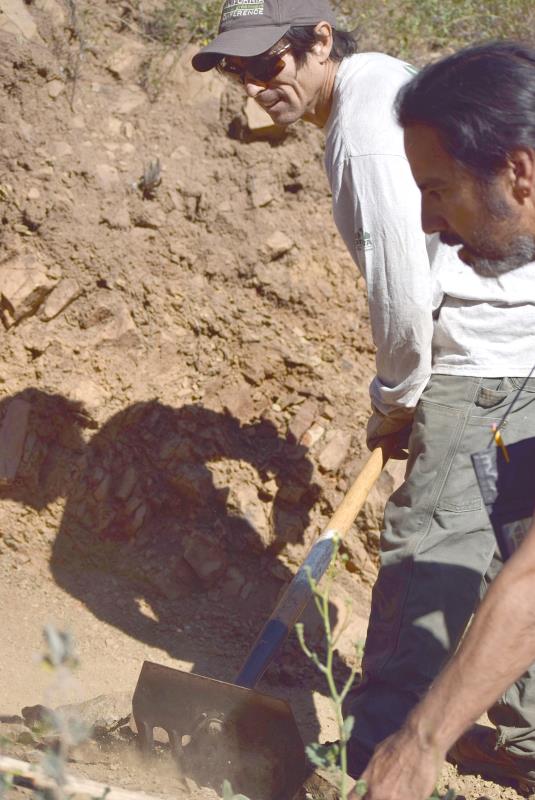 Fixing the tight, rocky switchback at the bottom of the Wood Canyon Vista Trail, part of the Backbone Trail.