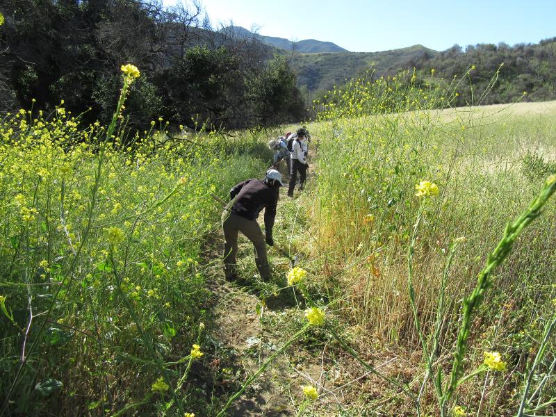 Clearing mustard on the Sin Nombre Trail