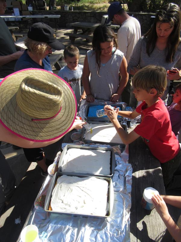 Saturday afternoon was spent relaxing around camp, chatting with friends and rehydrating, often with light- to dark-brown beverages. Some people went hiking or riding and youngsters helped decorate the desert cakes with colored icing and sprinkles.