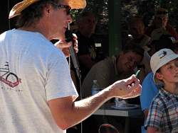 Fishing the winning ticket out of the Hallowe'en-themed bowl