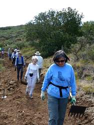 People in the distance are starting to head back, towards the barbecue lunch