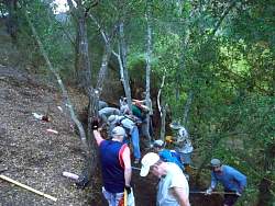 As lunch time approached, there was a last minute push by Crew 2 to finish off this tricky section that winds through the trees