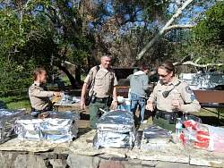Putting the finishing touches on the Sage Trail on Saturday after it was leveled, smoothed and narrowed by the SWECO trail bulldozer.