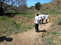 Putting the finishing touches on the Sage Trail on Saturday after it was leveled, smoothed and narrowed by the SWECO trail bulldozer.