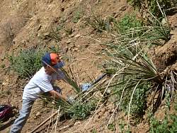 Putting the finishing touches on the Sage Trail on Saturday after it was leveled, smoothed and narrowed by the SWECO trail bulldozer.