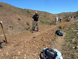 Putting the finishing touches on the Sage Trail on Saturday after it was leveled, smoothed and narrowed by the SWECO trail bulldozer.