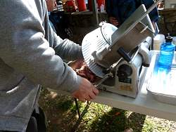 Putting the finishing touches on the Sage Trail on Saturday after it was leveled, smoothed and narrowed by the SWECO trail bulldozer.